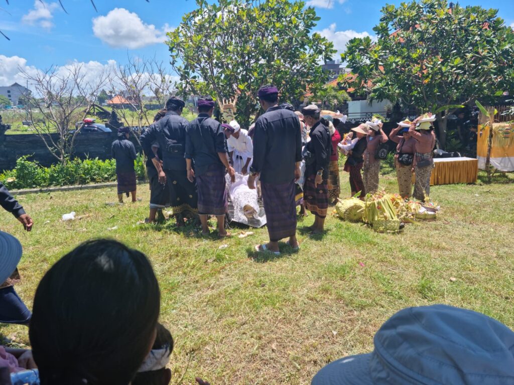 Eenmaal bij een kruispunt aangekomen lopen de mannen meerdere rondjes met de wadah. Dat doen ze om de boze geesten bij de overledene weg te houden. De hele ceremonie draait erom om de geest veilig naar het hiernamaals te brengen. Daar wacht de geest vervolgens om weer herboren te worden of, als de ziel puur genoeg is, eindelijk naar de goden te mogen.